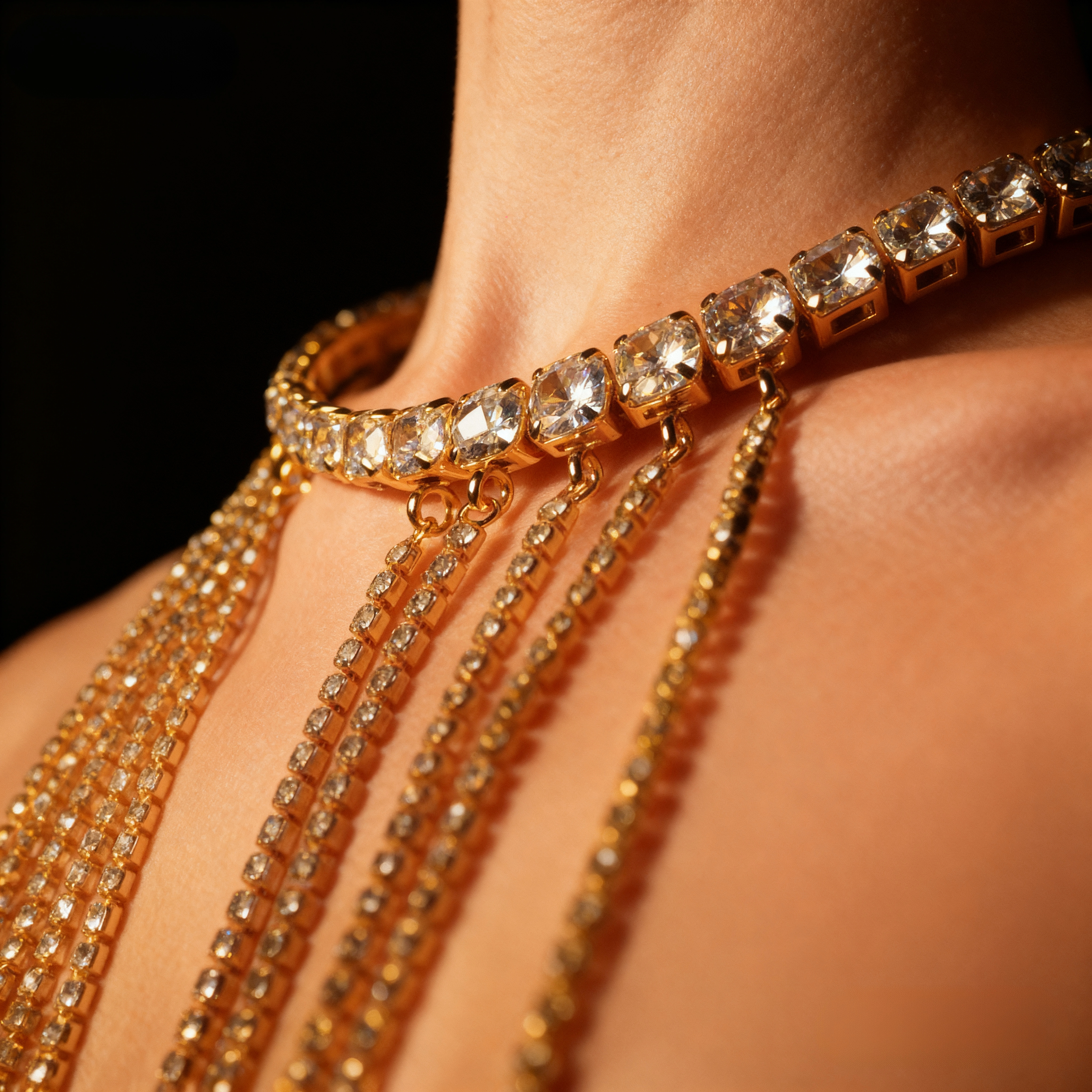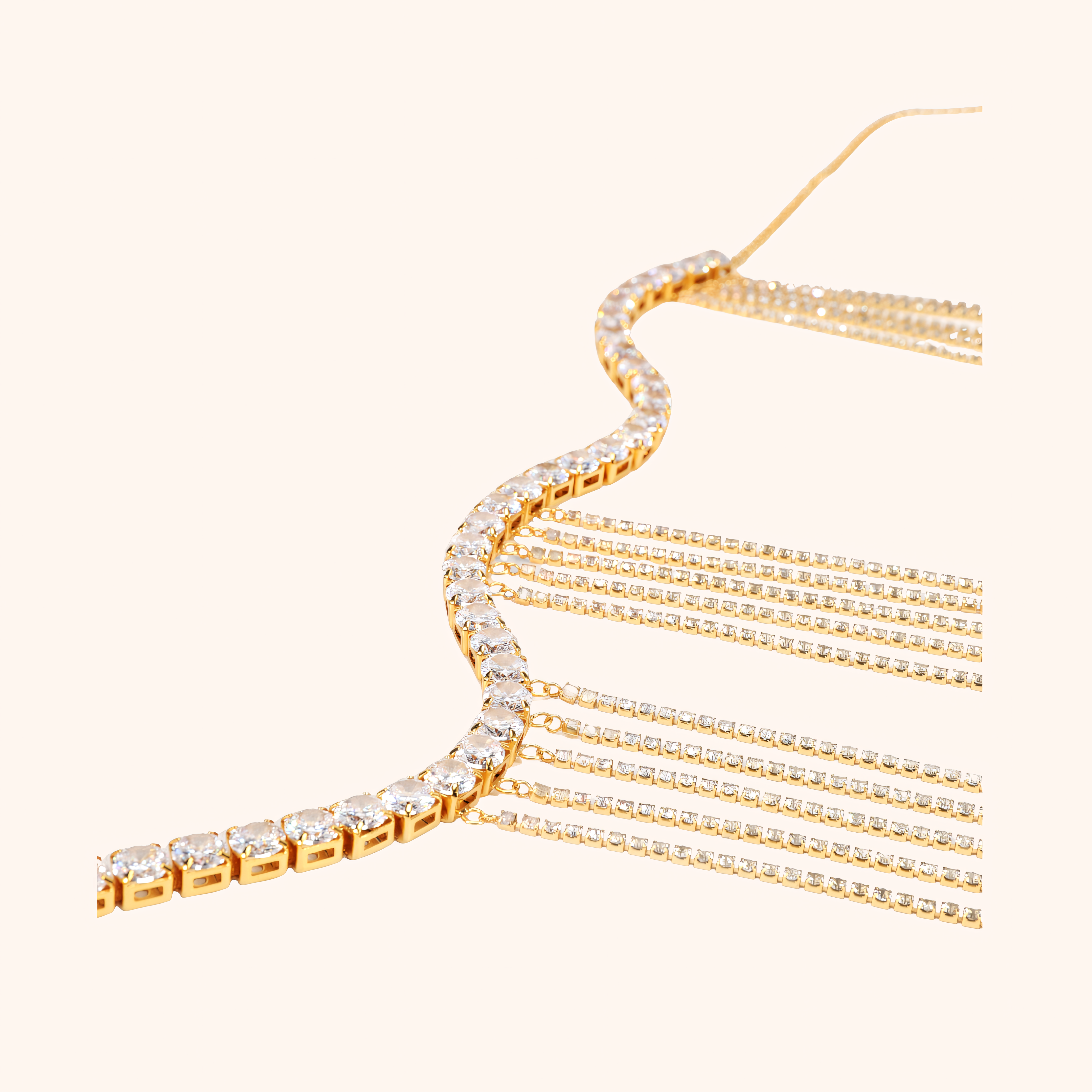 • Materials: Main chain of Cubic Zirconia (CZ) stones with additional CZ chains.