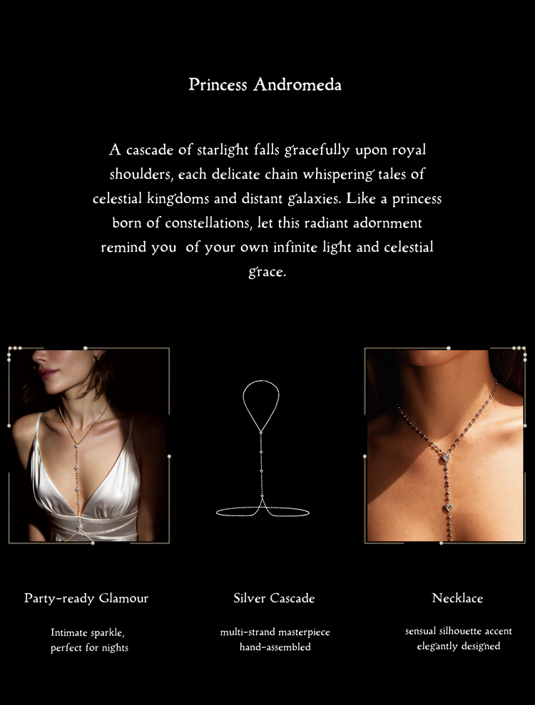 What makes it special is its versatility — it can be worn as a classic necklace or styled as a back chain. Pair it with a dress for a soft, elegant look, and if your outfit has a low open back, wearing it as a back chain adds a subtle, thoughtful touch that feels both unique and enchanting.