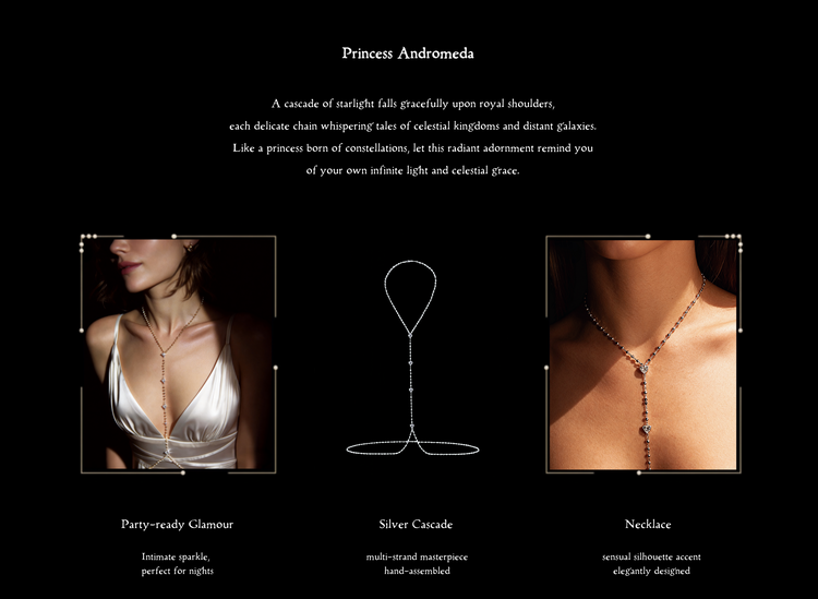 *N.B Our Princess Andromeda necklace has limited length adjustability at the waist, so please take a moment to check the sizing details to ensure a comfortable fit.