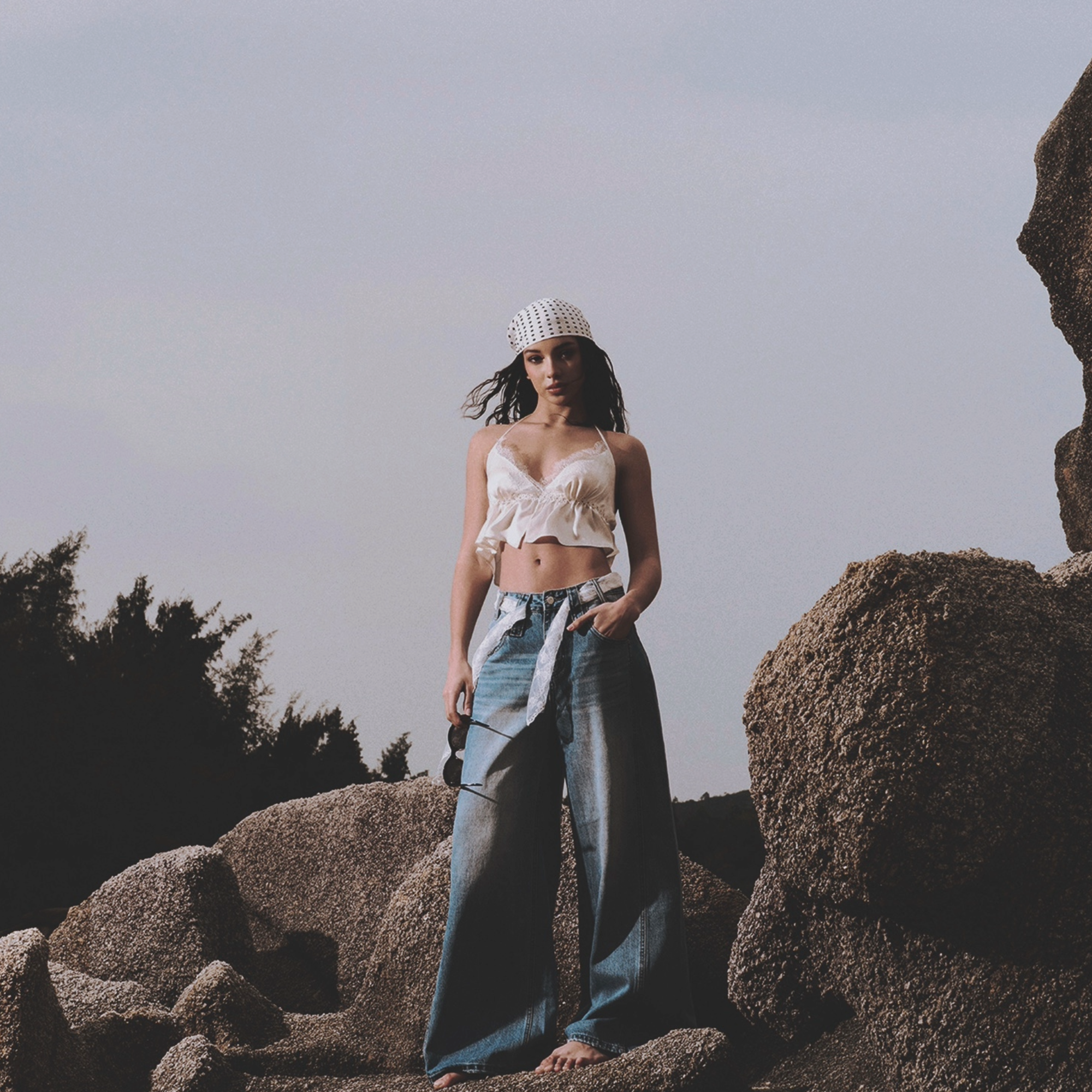 Rosa Canina in White blooms like a morning rose caught in the wind—a soft, luminous whisper of nature. The top has a fluid, unstructured silhouette, draping naturally, while a quiet ruffle hem adds gentle movement. A delicate miniature rose embroidery band encircles the waist like a secret held close.